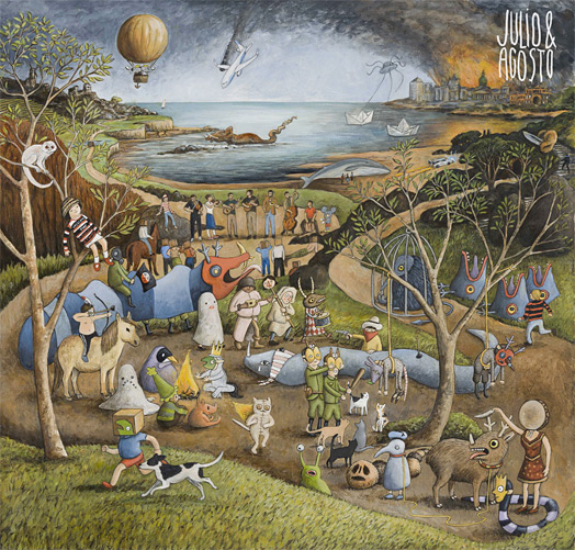 Sería injusto inscribir a Julio y Agosto en las filas de grupos de Buenos Aires herederos del boom generado por Onda Vaga. Es decir, orquestas mínimas con propensión a los arreglos vocales, las melodías abiertas y enérgicas, las interpretaciones virtuosas, las instrumentaciones acústicas y la tradición musical como marco de referencia. Sería injusto, pero algo de eso hay: el grupo que toma su nombre de dos de las mascotas de sus miembros fundadores parece encaminarse a secundar parte de esta avanzada que funciona como una bocanada de aire fresco en la música popular argentina. El ritmo de las cosas es el disco que debería instalar al grupo en las filas de las propuestas que los miles de turistas escogen para llevarse a sus países en sus visitas a Buenos Aires: canciones urbanas y localistas –en el buen sentido–, tan redondas que funcionarían con apenas una guitarra. Pero que en este álbum se expanden hasta el infinito gracias a la instrumentación delicada y al mismo tiempo potente a la que son sometidas por una banda que sabe muy bien qué quiere y, sobre todo, cómo conseguirlo y regalarle al oyente una buena dosis de música porteña genuina y elegante.